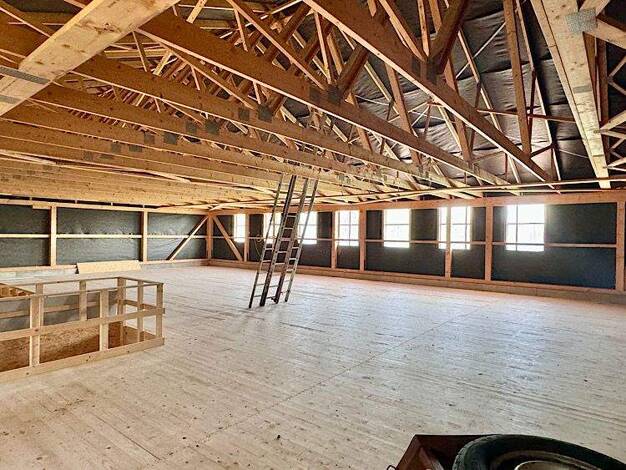 Hier kann man seinen Traum von Wohnen und Arbeiten unter einem Dach sehr gut verbinden. Ein Handwerker, ein Autofreund, ein Oldtimer-Liebhaber, alle finden viel Platz zum Arbeiten, Lagern, Produziere...
