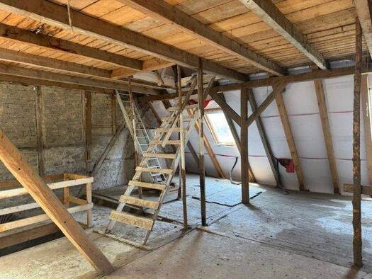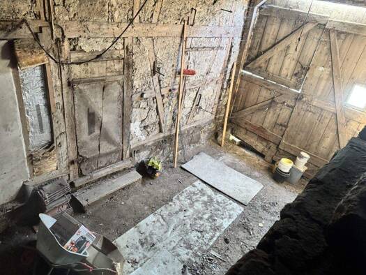 Das ehemalige Bauernhaus auf 307 m² Grundstücksfläche verfügt über vier Schlafzimmer, ein Wohn- und Esszimmer, eine Küche, ein Bad und eine Waschküche. Die Scheune steht vorne rechts auf einem Teil d...