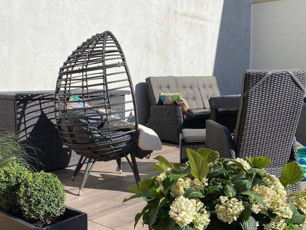 Der moderne Bungalow mit ausgebautem Dachgeschoss steht auf einem 809 m² großem Eigentumsgrundstück. Durch die Eckgrundstücklage hat man nur einen direkten Nachbarn. Terrasse und Garten sind idealerw...