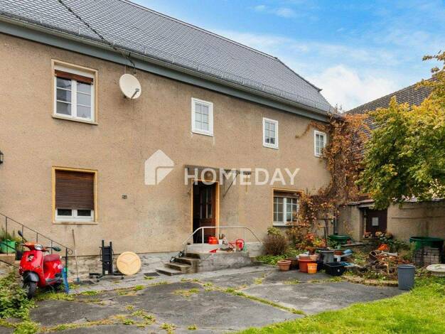 Das große freistehende Einfamilienhaus wurde teilweise in Lehmbauweise mit Nebengelass erbaut. Es besteht weiterer Um - und Ausbau, zur Erweiterung der Wohnfläche. Etwas Nebengelass mit Werkstatt, Ga...