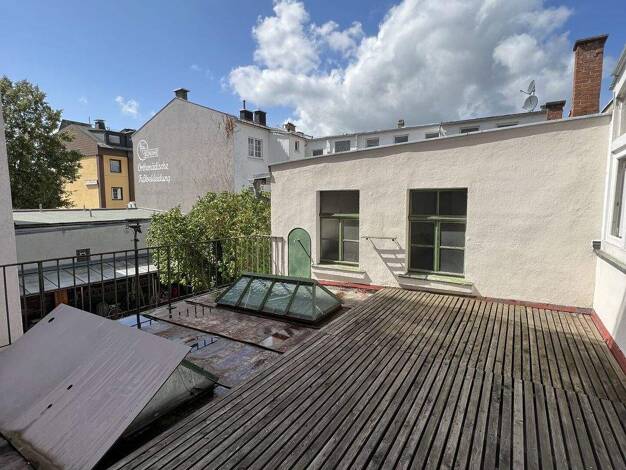 Eine Besonderheit ist nicht nur die Lage der Häuser, erbaut ca. 1900, sondern auch die Reihenhausbebauung mit Geschäften im Erdgeschoss und in den oberen Bereichen Wohnungen. Das Gebäude Hausnummer 4...