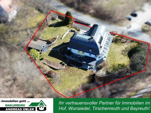 Objekt-Nr.: 3263 Zum Verkauf steht eine charmante und großzügige Villa mit Einliegerwohnung in zentrumsnaher Lage von Wunsiedel. Die Immobilie wurde ca. 1930 erbaut und befindet sich auf einem weitlä...