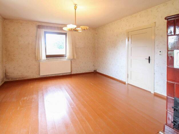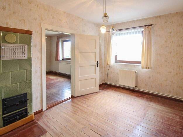 Dieses zweigeschossige massive Haus, längs der befestigten Straße gelegen, ist voll unterkellert. Im Erdgeschoss befinden sich das Wohnzimmer, der Flur, die Küche, ein Gäste- WC und ein weiteres Zimm...