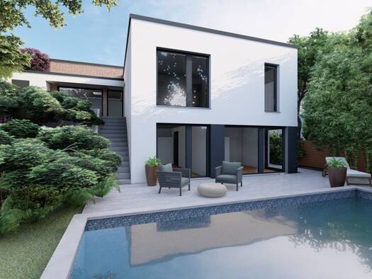 Diese außergewöhnliche Neubauvilla vereint moderne Bauhausarchitektur, hochwertige Materialien und ein durchdachtes Raumkonzept zu einem Zuhause für Menschen mit gehobenem Anspruch an Design, Kom-for...