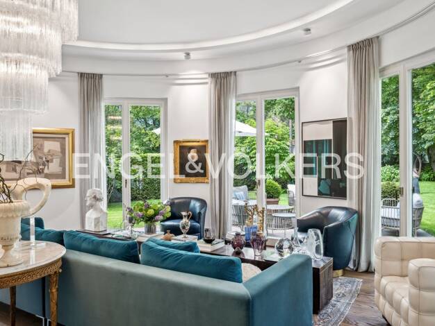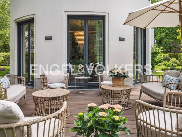 Klassischer hochwertig voll möbelierter Neubau Bj.2005 in bester, ruhiger Lage von Berlin Grunewald. Uneinsehbares, gepflegtes Grundstück mit ca. 600m2, Garagenhaus. Erdgeschoss Exklusives Entree mit...