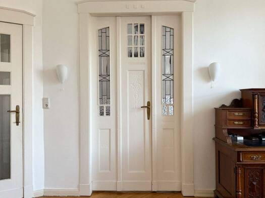 Die Eigentumswohnung befindet sich in einer Stadtvilla, die ca. 1913 erbaut wurde und den typischen Altbau-Charakter aufweist. Sie liegt in der Beletage und umfasst ca. 135 m² Wohnfläche, verteilt au...