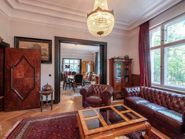 Willkommen in diesem architektonisch eindrucksvollen Landhaus aus dem Jahr 1925, das sich in einer der begehrtesten Lagen Berlins befindet - in einer ruhigen Anliegerstraße nahe dem Mexikoplatz, eing...