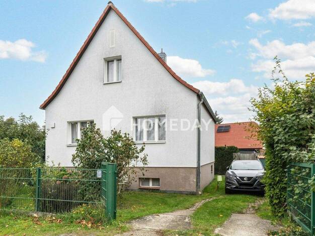 Das massive Wohnhaus wurde ca. 1936 errichtet und gliedert sich in 2 1/2 Zimmer, Küche und Bad bei einer Wohnfläche von ca. 63,60 m². Das Haus betritt man über einen Windfang und gelangt in den Flur....