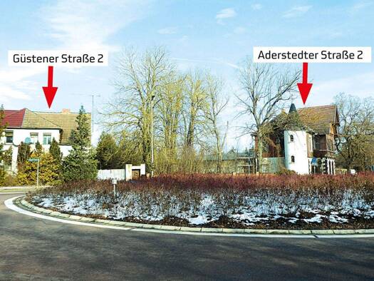 Ehemalige Ausflugsgaststätte „Weidmannsheil“. mit ruinösem Wohnhaus. Das Grundstück Aderstedter Straße 2 ist mit der ehemaligen Ausflugsgaststätte bebaut. Das ruinöse Wohnhaus befindet sich in der Gü...