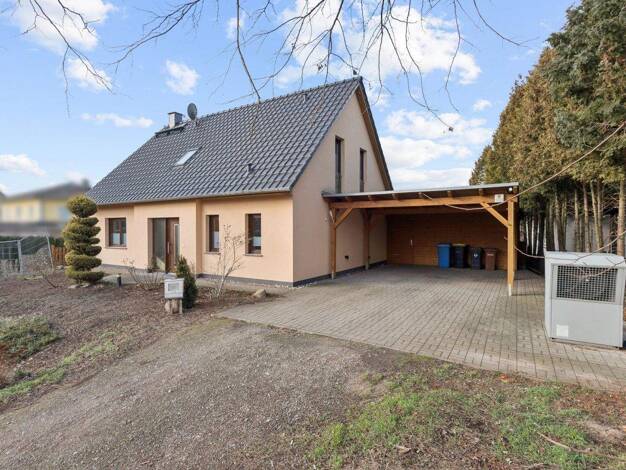 Das Grundstück ist bebaut mit einem eingeschossigen, nicht unterkellerten Einfamilienwohnhaus, nicht ausgebautes und ausbaubares Dachgeschoss, Baujahr laut Bauakte 2020, Wohnfläche ca. 146 m². Der Ve...