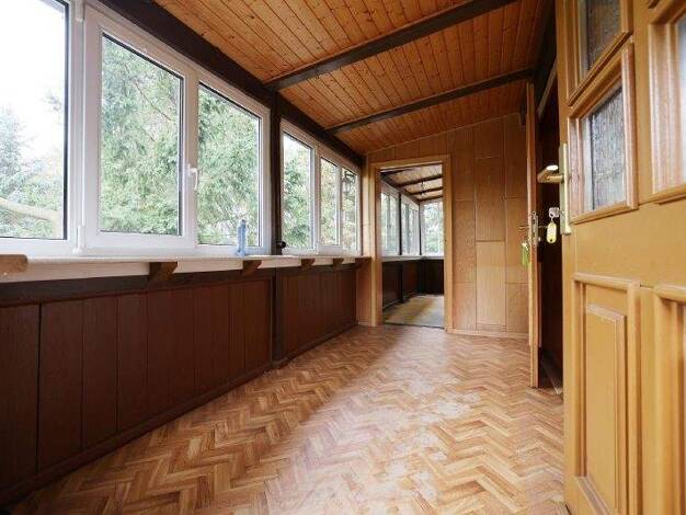Eine Gartenlaube wurde 1996 mit genehmigten Bauantrag zu einem Einfamilienhaus umgebaut, ein Wintergarten als Eingangsbereich, ein Wintergarten als zweiten Eingang über den hinteren Garten, Gesamtwoh...