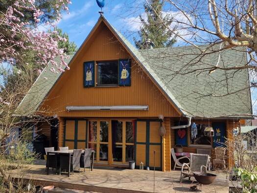 Hier läßt es sich das ganze Jahr über wie im Urlaub wohnen ! Das charmante Gebäude wurde 1998 in Blockbauweise im schwedischen Stil errichtet und überzeugt durch seine warme, gemütliche Ausstrahlung....