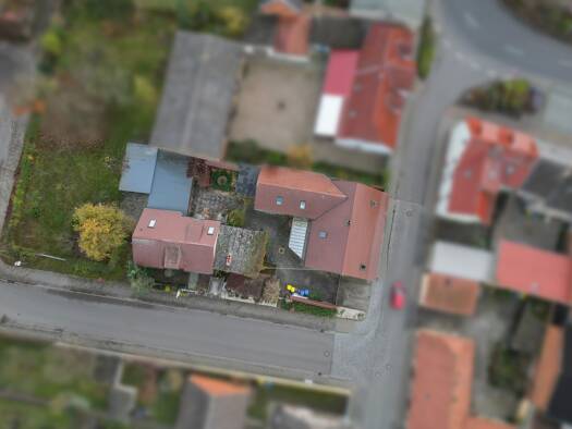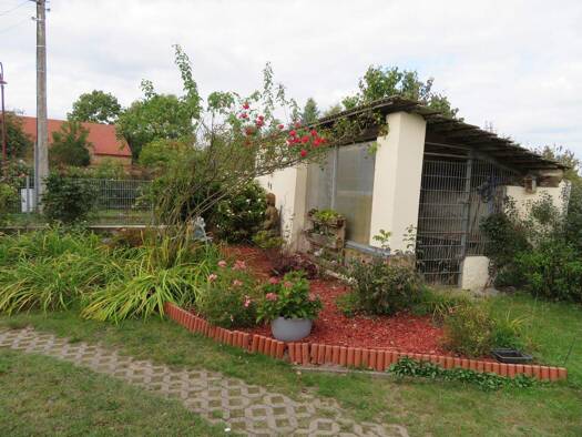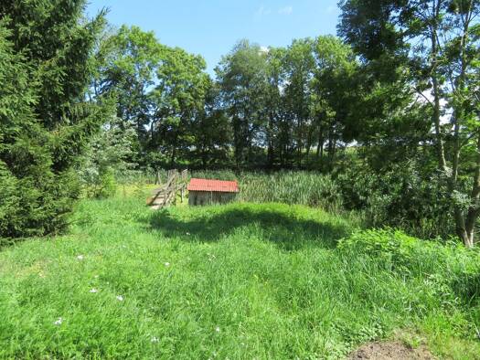 Das Grundstück mit seiner Größe von ca. 5.400 m² befindet sich in Randlage des Ortes, an einer kaum befahrenen Dorfstraße. Es ist bebaut mit einem Wohnhaus aus dem Jahre um 1935 und einem kleineren N...