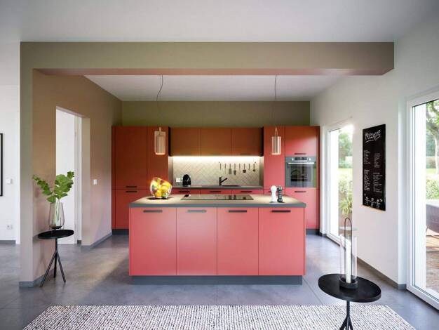 Die kubische Form ist der Klassiker im Stadthausdesign und prägt auch das Aussehen unseres Stadthaus Flair 124. Im Inneren setzt sich der urbane Stil fort: der großzügige Wohn- und Essbereich erstrec...