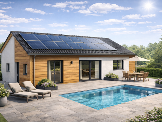 Objektbeschreibung Energetisch sanierter Winkelbungalow (Streif-Fertighaus) mit neuer Dämmung und Photovoltaikanlage (12 kW) mit Stromspeicher (9,6 kWh) in familienfreundlicher Wohnlage ohne direktem...