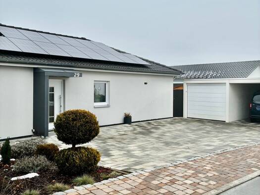 Dieser moderne Bungalow in hochwertiger Massivbauweise, zertifiziert nach KfW-40-Standard, steht für zeitgemäßen Wohnkomfort auf höchstem Niveau. Das Haus wurde im Jahr 2023 fertiggestellt und befind...