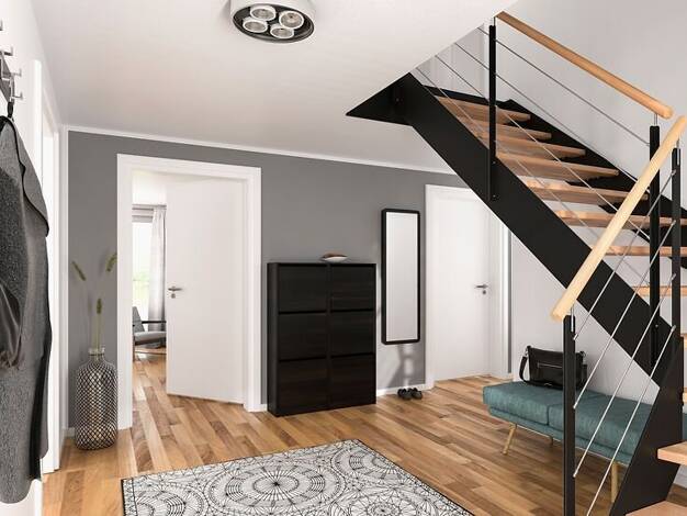 Hier trifft modernes Design auf clevere Raumaufteilung. Clever 2 bietet mit 136,07 m² großzügige Wohnbereiche, eine offene Küche und praktische Stauraumlösungen. Im Obergeschoss sorgen gut geschnitte...