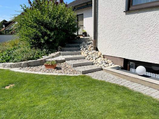 Dieses großzügige Einfamilienhaus mit Einliegerwohnung im Dachgeschoss steht auf einem sonnigen Hanggrundstück mit herrlichem Weitblick ins Grüne. Die ca. 220?m² Wohnfläche verteilen sich auf zwei Et...