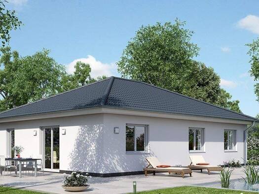 Einfacher und formschöner Bungalow. Individuell geplant und stufenlos glücklich! Leben, Arbeiten, Hauswirtschaften und Schlafen - hier spielt sich alles auf einer Wohnebene ab. Das Angebot beinhaltet...