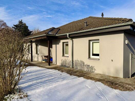 Der charmante Bungalow aus dem Jahr 2006 besticht durch seine solide Massivbauweise und eine Wohnfläche von 85,92 m² auf einem großzügigen 711 m² großen Grundstück. Mit zwei Schlafzimmern, einem Bade...