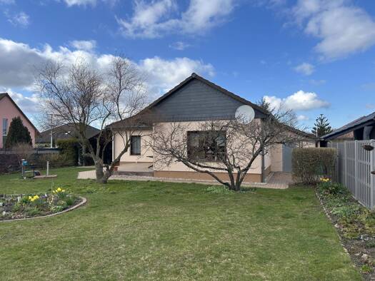 Dieser Bungalow mitten in einer grünen Idylle wurde in massiver Bauweise errichtet. Es bietet Wohnen auf einer Ebene und ein moderner Grundriss ermöglicht ein großzügiges Wohnerlebnis. Der Bungalow b...