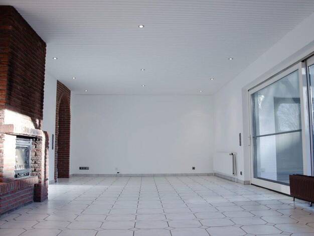 WEBER- Haus, Baujahr 1994, Erdgeschoss mit sehr großzügigem individuellen Grundriss 140 qm, keramischer Fußboden, Fußbodenheizung und Kamin. Erdgeschoss Eingangsbereich: großzügige Diele 8 qm mit Gäs...