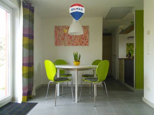 Beim Betreten der Immobilie empfängt Sie ein heller, offen gestalteter Flur. Bereits hier eröffnet sich durch die Glaselemente der Tür der Blick in den großzügigen Wohn- und Essbereich sowie weiter i...