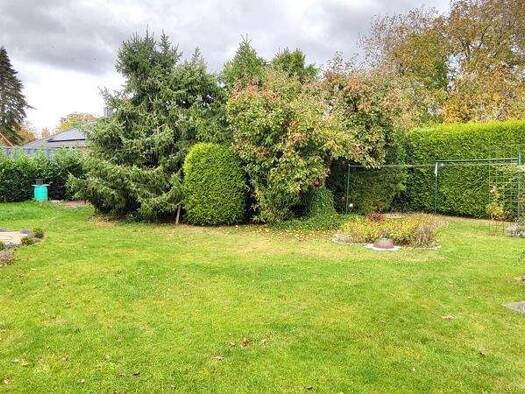 Das ca. 1.275 m² große, real geteilte Grundstück liegt ruhig an einer Anliegerstraße im Grünen. Im Osten des Areals führt eine Zuwegung zum Carport und dem geräumigen Gartenhaus. Von hier führt ein g...