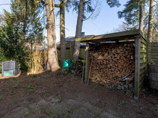 Das ca. 1.275 m² große, real geteilte Grundstück liegt ruhig an einer Anliegerstraße im Grünen. Im Osten des Areals führt eine Zuwegung zum Carport und dem geräumigen Gartenhaus. Von hier führt ein g...