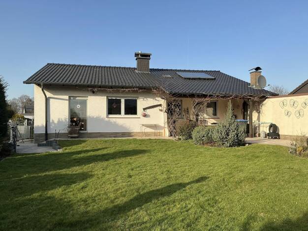Dieser liebevoll modernisierte Bungalow überzeugt durch seine durchdachte Raumaufteilung und das angenehme Wohngefühl auf einer Ebene. Im Zuge der umfassenden Sanierung im Jahr 2023 wurde die Immobil...