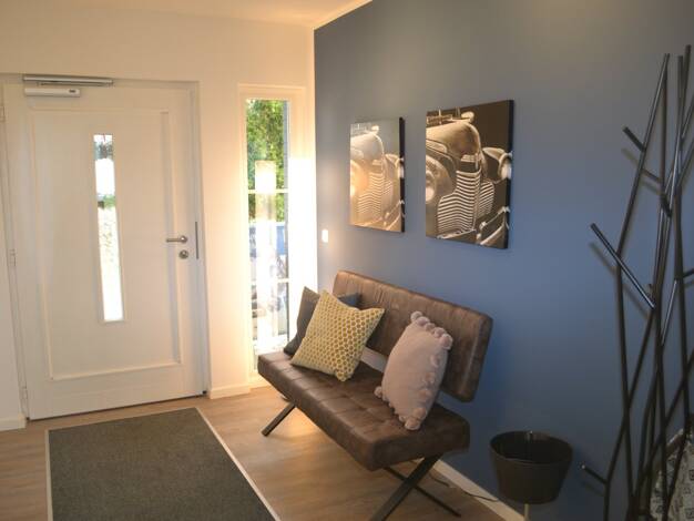 Willkommen im Bungalow Cute - Ein 83 m² Zuhause mit praktischer und komfortabler Gestaltung für ein Leben voller Freude und Gemütlichkeit. Die Diele bietet Platz für einen Garderoben- oder Einbauschr...