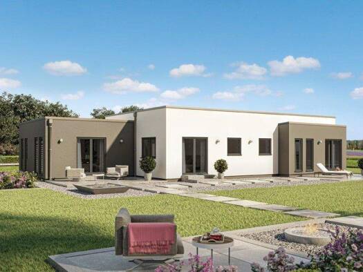 Mit ca. 90 m² Wohnfläche auf einer Ebene bietet der Bungalow 92 ein komfortables Zuhause für alle, die auf Treppen verzichten möchten. Dank seiner kompakten Außenmaße (11 m x 9,63 m) passt er ideal a...