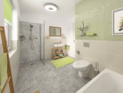 Der Bungalow 92 bietet auf 90 m² stufenloses Wohnen mit Wohnzimmer, Schlafzimmer, Kinderzimmer, Küche und Bad. Große Fenster sorgen für Helligkeit und direkten Gartenzugang. Preis ab ca. 207.950 S...