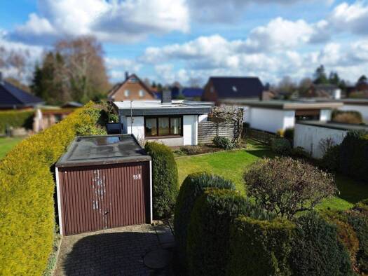 Kurzbeschreibung Ruhige Lage, toller Garten, große Garage! Objekt Dieser von uns im Alleinauftrag angebotene Flachdach-Bungalow wurde in massiver Bauweise auf einem ca. 1.087 m² großen Grundstück err...