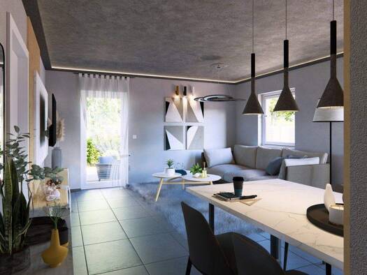 Aufschließen, eintreten und wohlfühlen - willkommen in einem Zuhause, das modernes Wohnen mit höchstem Komfort vereint. Schon der einladende Eingangsbereich mit edlen Fliesen in Marmoroptik schafft e...