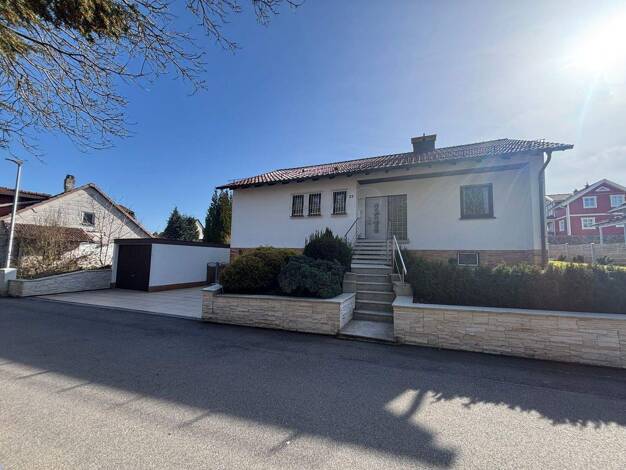 Der großzügig konzipierte Winkel-Bungalow fasziniert von Anfang an. Die absolut exklusive Wohnlage, am Stadtrand von Coburg, ist bereits ein Fingerzeig, wo die Reise hingeht. Komplett eingewachsen, b...