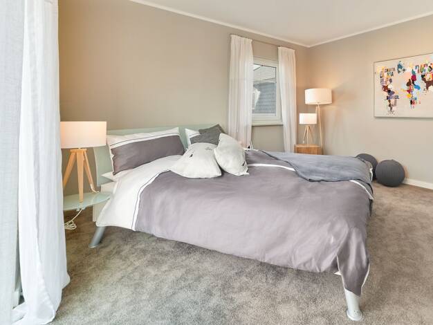 Der Bungalow 131 (130-139 m², 9,5 × 15,87 m, 1 Etage) bietet 5 Zimmer, darunter zwei Kinderzimmer, ein Schlafzimmer, zwei Bäder und eine große Wohnküche mit angrenzendem Wohnzimmer. Dank bodentiefer ...