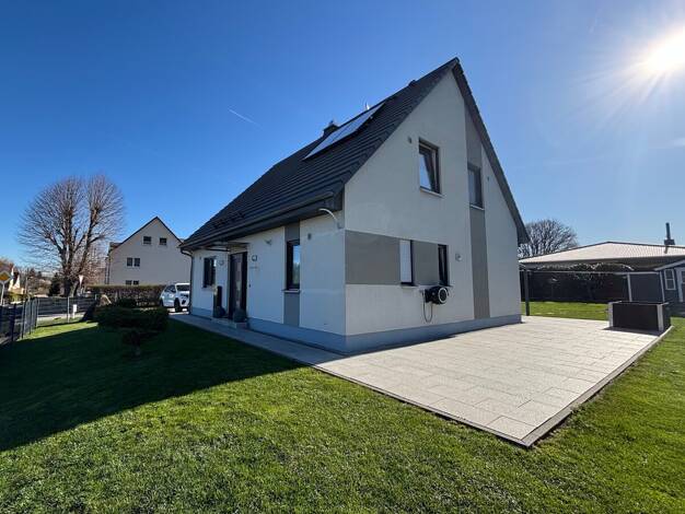 Das hübsche Wohnhaus ist nicht sehr groß, kann aber mit Ideen "wachsen". Es befindet sich an einer ruhigen Seitenstraße einer Wohnsiedlung am Orstrand der Gemeinde Demitz-Thumitz in Richtung Birkenro...