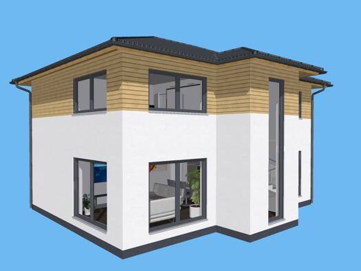 Auf einem zentralen Baugrundstück errichten wir Ihr persönliches Massa Haus . Auf zwei Etagen verteilen sich vier Zimmer in denen Sie und Ihre Familie sich wohlfühlen können.
