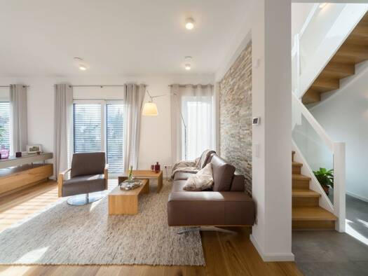Schick und gradlinig - die perfekte Form zum stadtnahen Wohnen auf 2 Ebenen - ganz ohne Dachschrägen und Komfortverlust. Viel Raum zum Leben, ein Platz fürs Home-Office und im Obergeschoss eine Ankle...