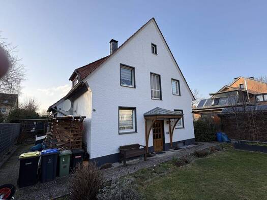 Dieses gepflegte und geräumige E-Zweifamilienhaus liegt in einer gewachsenen Siedlung zwischen der Bielefelder Str. im Süden und der Heidenoldendorfer Str. im Norden in einer ruhigen Sackgasse. Ein F...