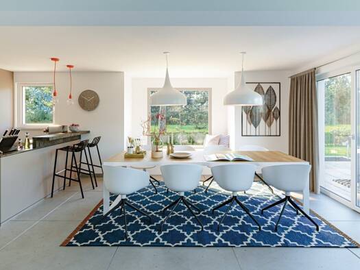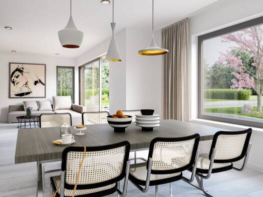 Dieses Fertighaus lässt Wohnträume wahr werden! Von außen überzeugt es mit seiner freundlichen und einladenden Gestaltung. Im Mittelpunkt des Entwurfs steht ein quadratischer Baukörper, der von einem...
