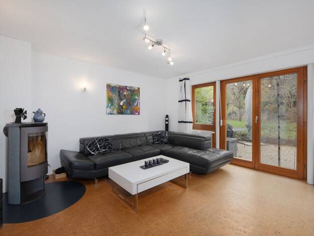 Doppelhaushälfte Erdgeschoss: Wohnküche inkl. Einbauküche und Essecke. Geräumiges Wohnzimmer mit direktem Zugang zur Terrasse und in den Garten. Im Erdgeschoss befindet sich zusätzlich ein Gäste-WC. ...