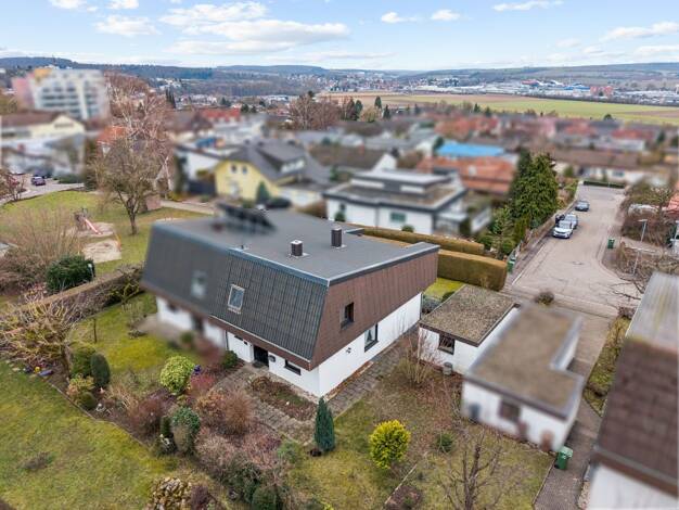 Diese massiv gebaute Doppelhaushälfte aus dem Baujahr 1953 wurde 1967 durch einen Anbau mit Pultdach erweitert. Zum Angebot gehören zudem eine Garage mit Platz für zwei Pkw sowie ein überdachter Scho...