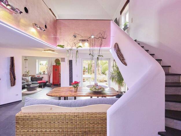Wer ein klassisches Einfamilienhaus mit vielen abgeschlossenen Zimmern sucht, wird hier nicht fündig. Diese außergewöhnliche Doppelhaushälfte aus dem Jahr 2004 begeistert vielmehr durch ein offenes R...
