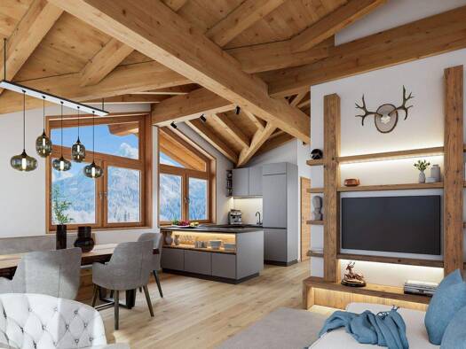 Diese neu erbaute Doppelhaushälfte (Baujahr 2024) - rechtlich deklariert als Wohnung (siehe "Sonstige Angaben") - vereint auf eindrucksvolle Weise moderne Architektur, Liebe zum Detail und alpinen Wo...