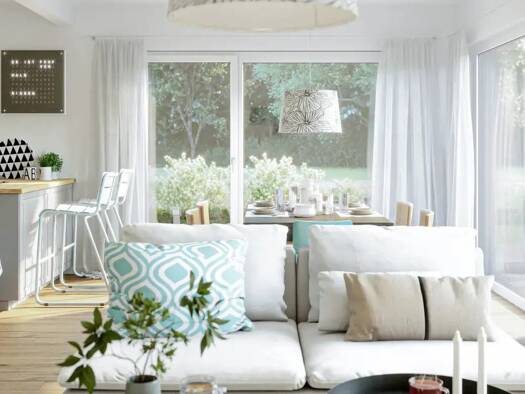 Objektbeschreibung Das Doppelhaus Aura 115 ist die ideale Kombination aus urbanem Lebensgefühl und ländlichem Charme – und bietet viel Raum für eigene Ideen. Auf rund 118 Quadratmetern Netto-Raumfläc...