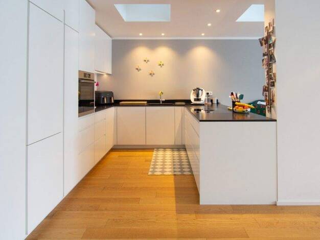 Schon beim Eintreten empfängt Sie ein heller, weitläufiger Flur. Der offener Wohn- und Essbereich ist lichtdurchflutet und hat eine große Fensterfront mit direktem Zugang zur sonnigen Terrasse. Hier ...