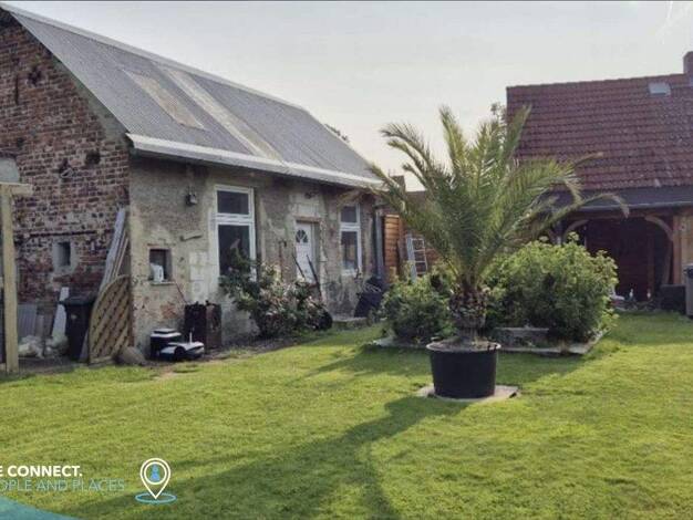 Schmale Doppelhaushälfte, eingeschossig mit ausgebautem Dachgeschoss, 132 Quadratmeter Wohnfläche, mit Anbau und zwei Nebengebäuden, Baujahr etwa um 1900. Bitte kontaktieren Sie uns bei weiteren Frag...