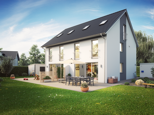 Klein, aber fein, so kommt unser Doppelhaus 07 daher. Unter dem eleganten Satteldach befinden sich zwei Wohneinheiten - und diese verteilen sich auf zwei Ebenen. Sie bieten ausreichend Raum und Komfo...